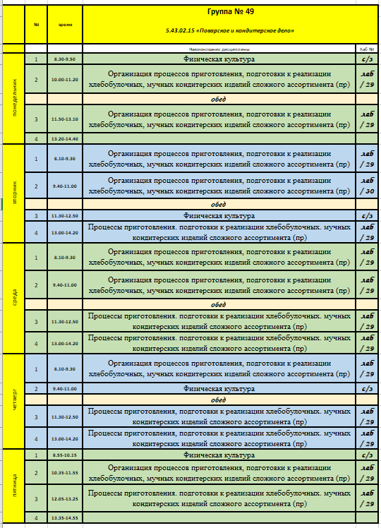 Расписание занятий на 2025 – 2026 учебный год (второе полугодие):